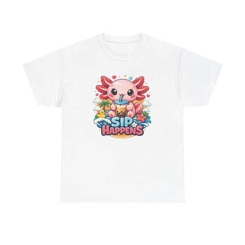 Axolotl "Sip Happens" T-Shirt — Cute Boba drink